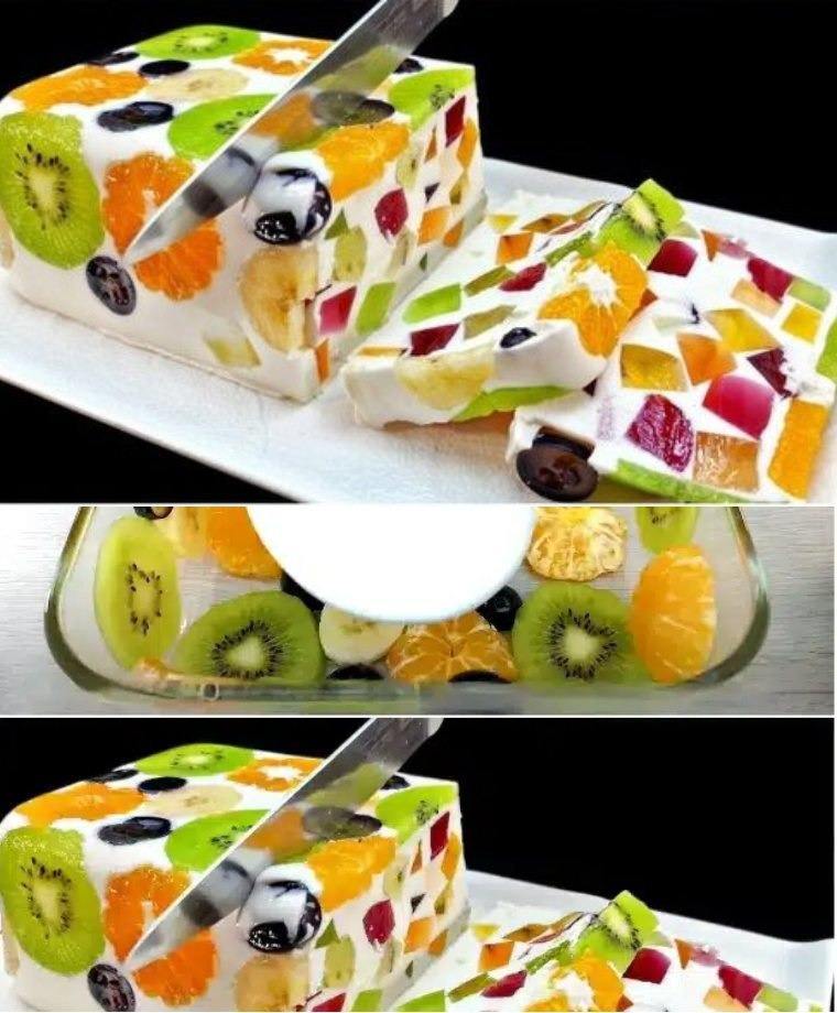 Rezept und Zutaten: Gelee mit verschiedenen Geschmacksrichtungen, je 90 g Geschmacksrichtungen Heidelbeere, Kiwi, Kirsche und Mandarine 200 ml kochendes Wasser Gut mischen In eine geeignete Form gießen siehe Fortsetzung auf der nächsten Seite